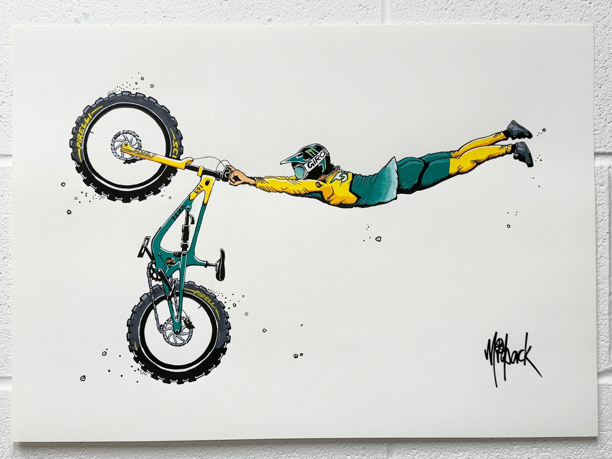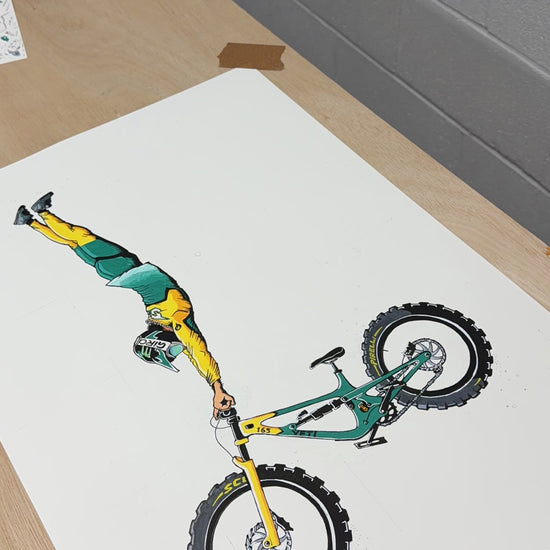 For Silva!Order a print in support of the recovery of Adolf Silva after he put it all on the line at Redbull Rampage 2025 with his double backflip crash that resulted in life changing injuries.. lets get silva the best recovery possible. My original art piece has been created with acrylic pens on 280gsm matte fine art paper and signifies silva's iconic superman fully extended which he executed with absolute steeze in his rampage runs before his unfortunate crash further down the course, this piece is to symbolise his attitude towards his recovery - 'a real life superman' Each print is a direct copy of the original and is A3 (297mm x 420mm) in size and is packaged in a 100mm2 cardboard box tube to allow the thick fine art paper to not be rolled too tight so it will flatten out after unpacking with out distortion.