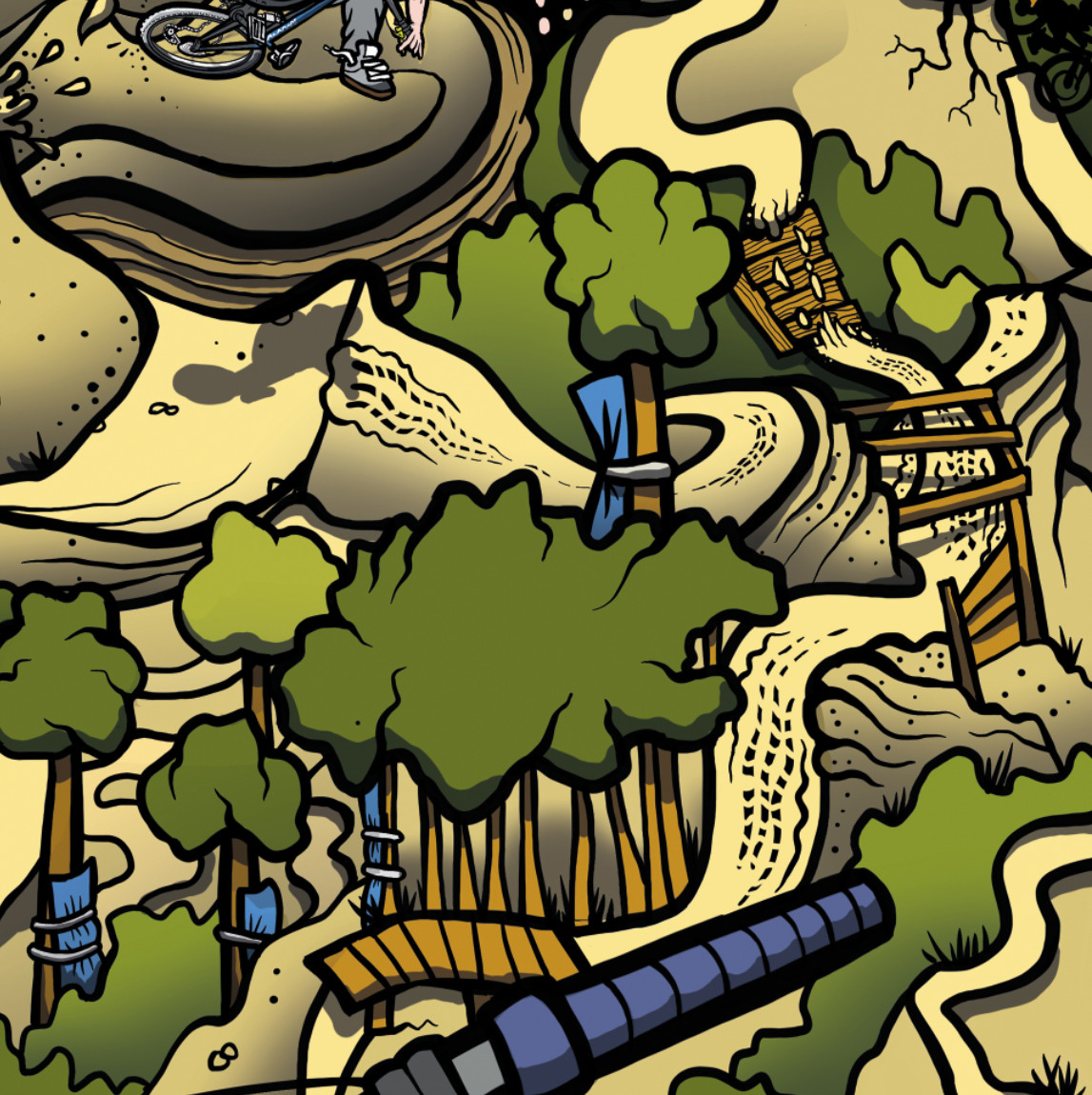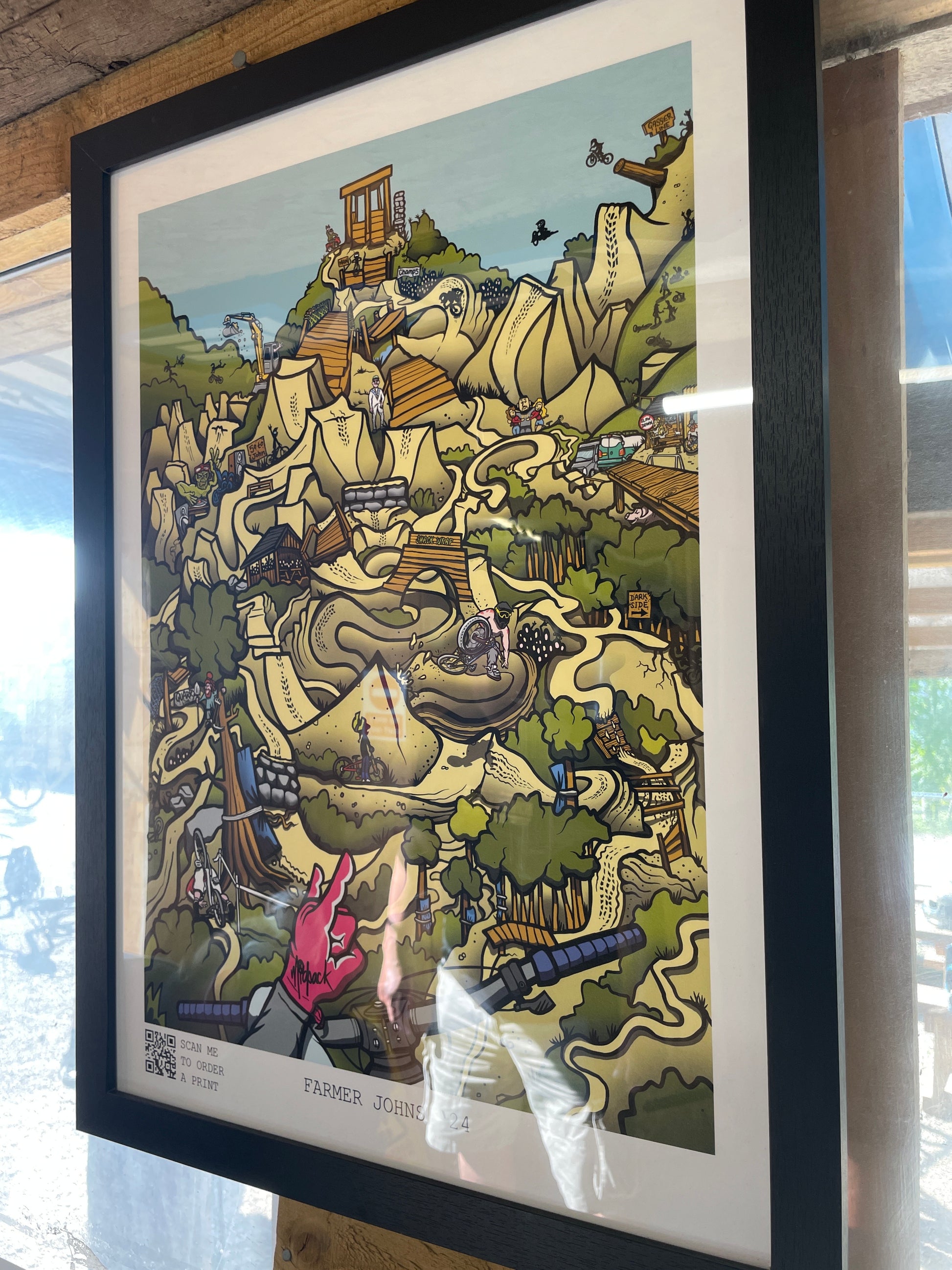 Farmer Johns Bike Park packed in to a single piece of art.. after only a few months of riding such a sick place I did most of this piece from memory and clips taken on the go pro. Fished it all off and brought it to life with some research into local riders/trail builders ans some input from John and his crew.. Nice one John! Kind enough to allow me to Feature this in the cafe at the park