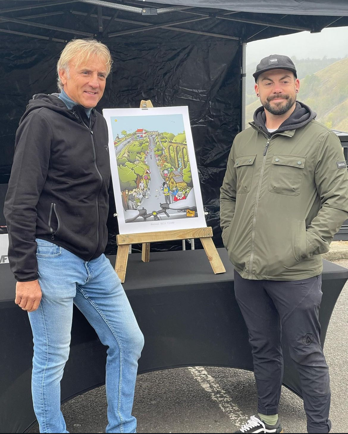 Welcome to the Monsal Hill Climb. A brutal road biking event deep in the bottom of Monsal rising to the brow of the hill at Hobb's Cafe and the Monsal Head Hotel. This piece was released on the event day October 6th 2024. What a day it was, with the icing on the cake.. Malcolm Elliott - still the current record holder from 1981 signed my display print so I could donate it to the event organisers to contribute to funds for the following year.
