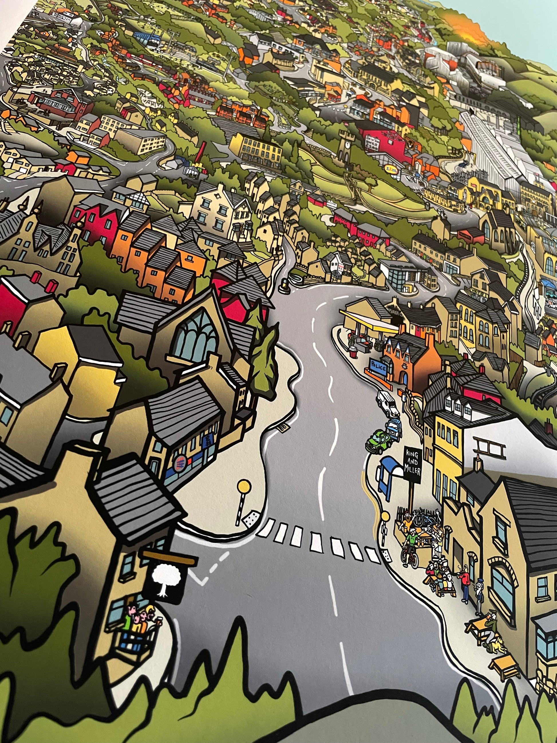 This artwork has been my biggest test yet. The level of detail and packing in the lay of the land into a portrait orientation was a challenge to say the least. My inspiration for this came from many a bike ride over the Wharncliffe crags with the lads or a dog walk with the family. The view from there as many will know is the best by far and is a perfect angle to feature both sides of the valley.