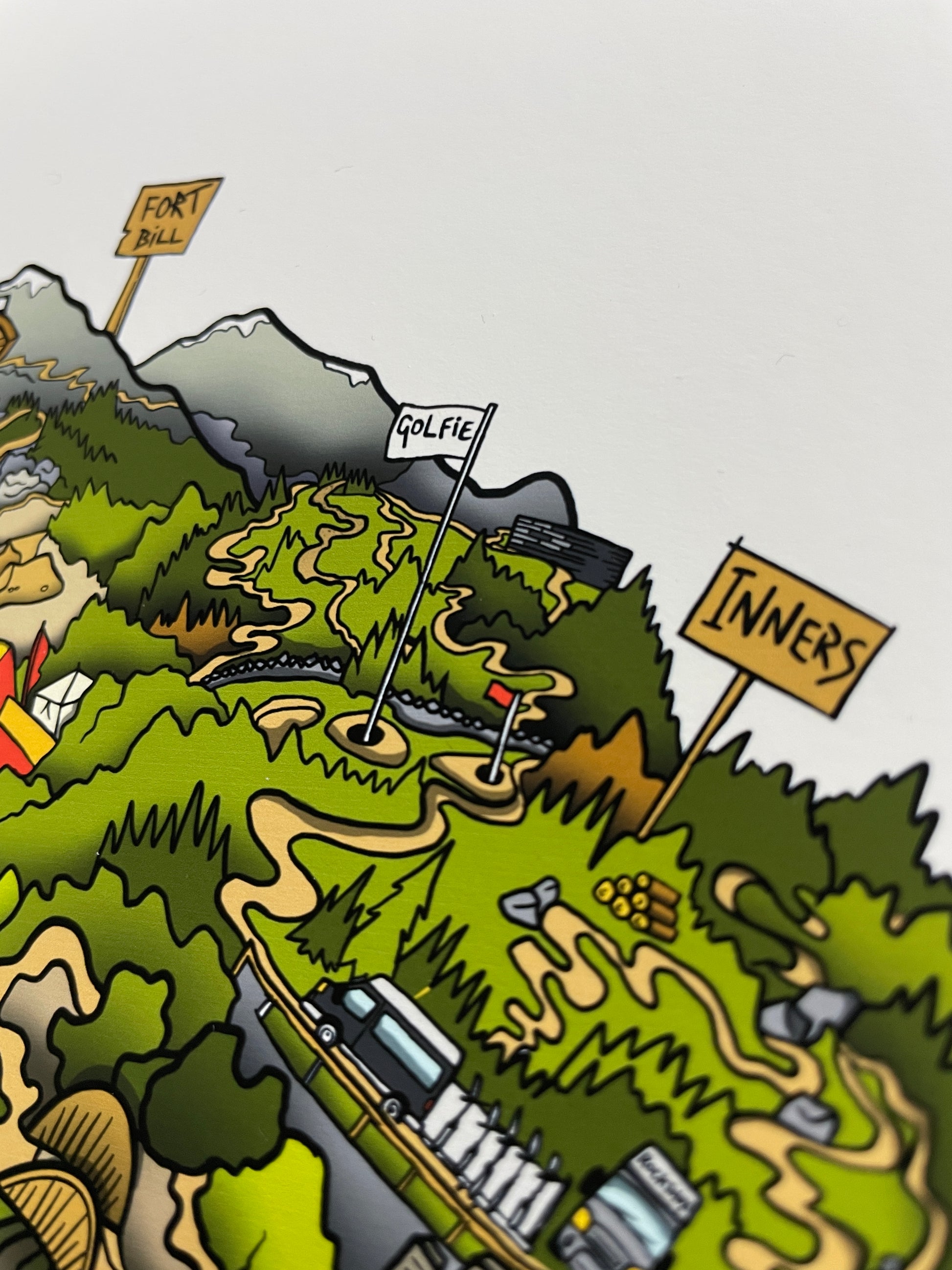 Welcome to Planet Bike Park UK my first artwork covering the whole of Great Britain with some of the most iconic bike parks in the British Isles. This perspective was something I had been eager to experiment with to create a spherical planet shape to pop out of the paper and I'm very happy with the results.