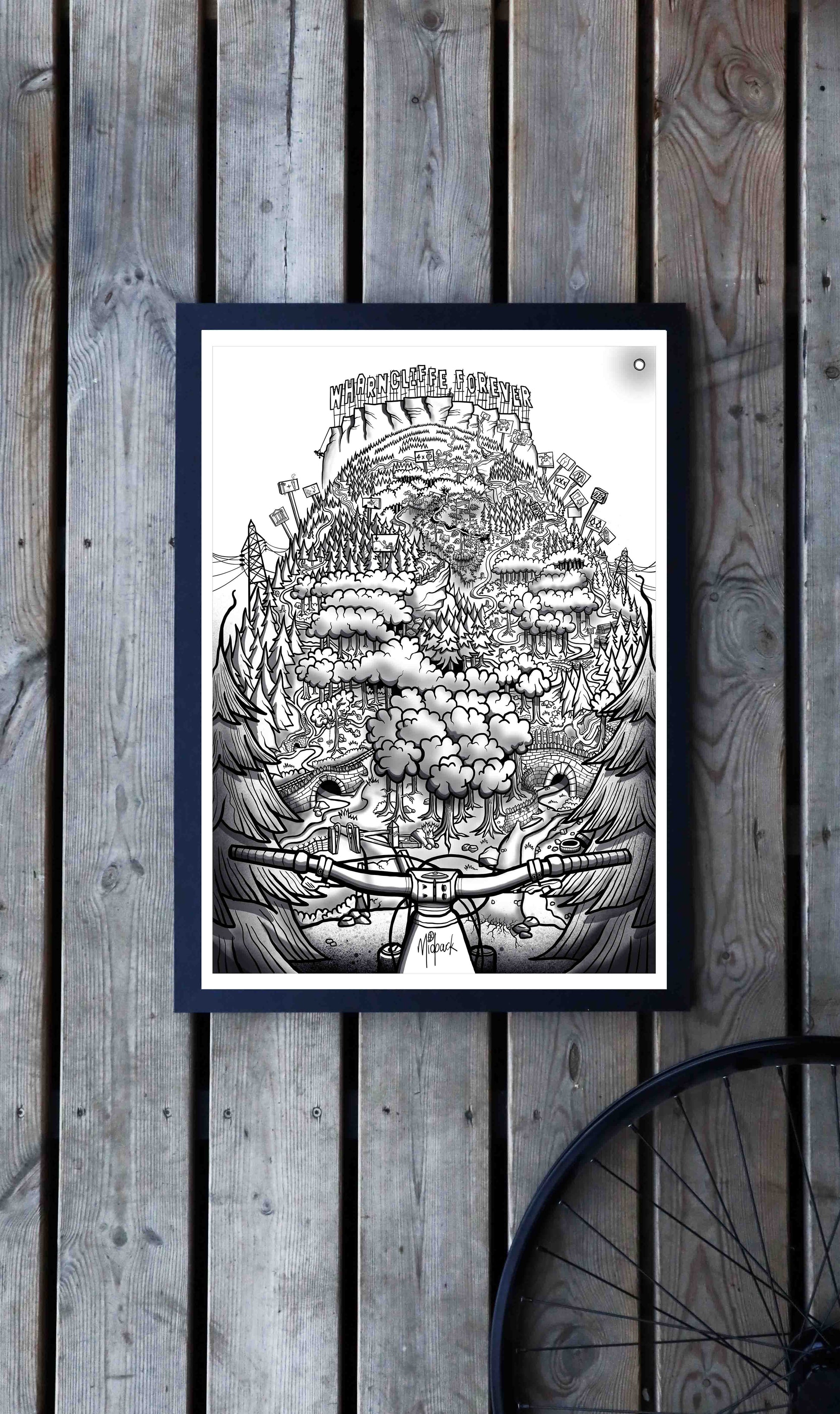 For all the Riders of Wharny from Sheffield and Beyond, this piece has been a vision in my mind for sometime and one of the hardest things to complete. My only hope was to capture that feeling of pulling on to Station Road and pedalling up in the anticipation of conquering a new feature on the trails.
